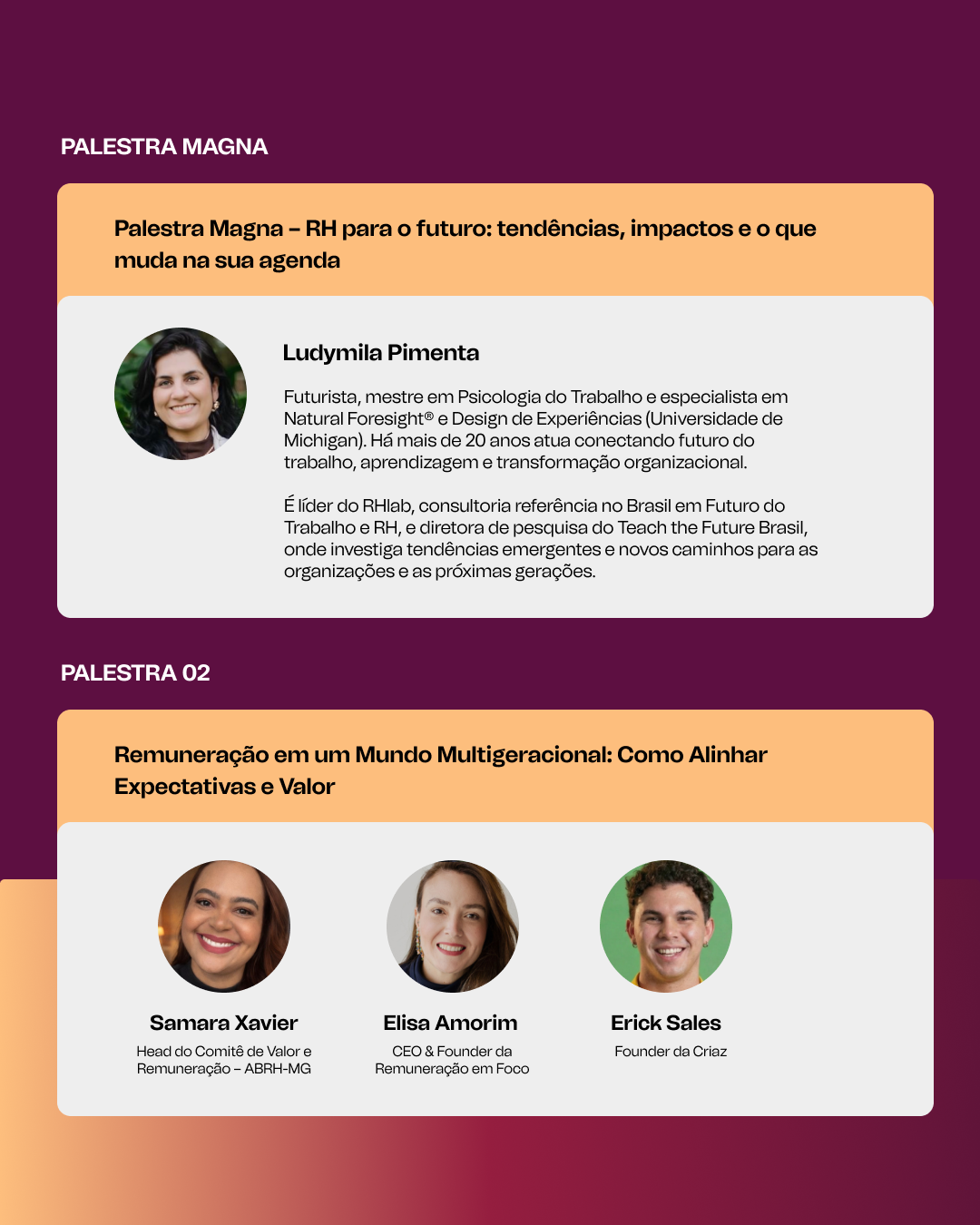 Neste summit, o debate gira em torno dos novos modelos de remuneração total, incentivos de curto e longo prazo, remuneração variável e meritocracia real, em um cenário onde as empresas precisam alinhar pessoas, estratégia e resultados com mais precisão.